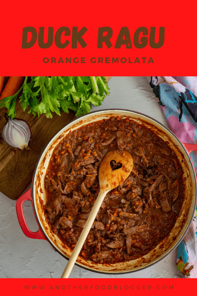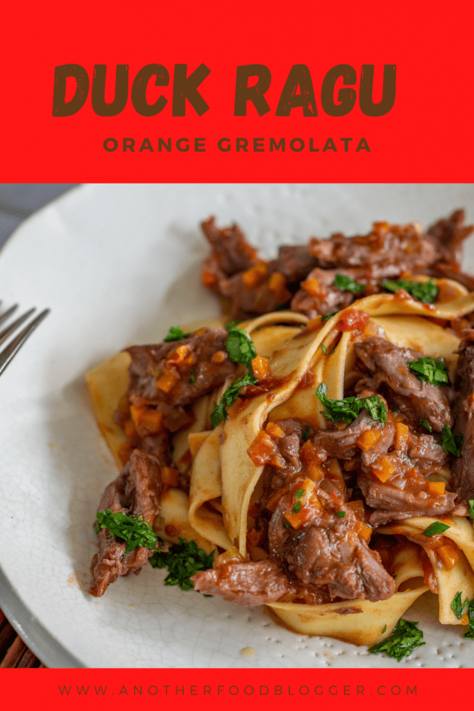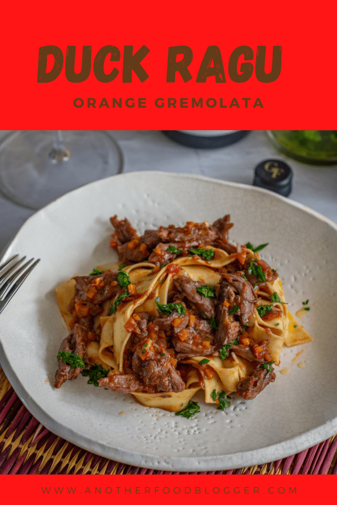 I've topped this duck ragu with a simple orange gremolata. Now, it's not a gremolata to the purists as there is no garlic, but sometimes you need to simplify or modify things a little - don't you?