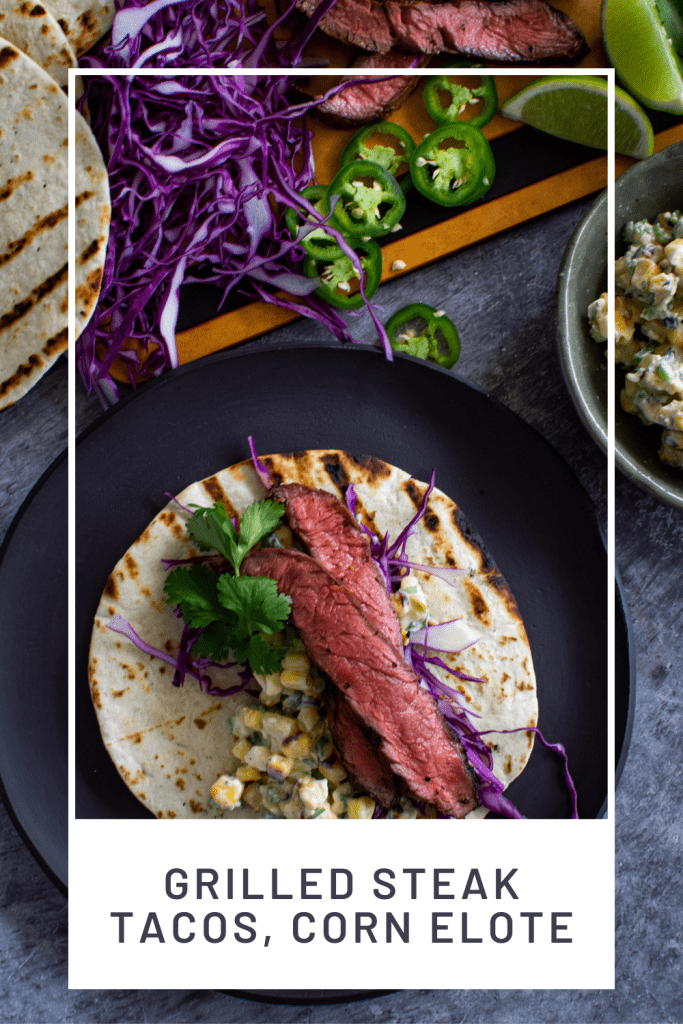 Yep, that's right - I am BIGGING up this recipe and rightly so. These grilled steak tacos with creamy corn elote are a thing of sheer beauty. The fact they are ready in 20 minutes, and you can feed a crowd with them is simply a winner. Not to mention how damn tasty they are too. Smokey, creamy, and a little spicy with a lovely texture from your charred tortilla and crunchy red cabbage. I am literally drooling as I write this!