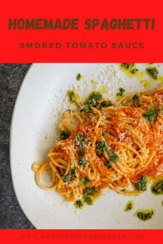 This spaghetti and smoked tomato sauce is one that the family has asked me to make a few times lately! The delicious smoked tomato sauce is vegetarian and vegan friendly, is really simple to make and has bags of flavour.
