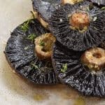 Once seared, allow the beef to cool on a plate. About 5-10 minutes will do. Then wrap tightly lengthways (so it retains its cylindrical shape) in cling film. I usually do 2-3 layers so it holds its shape. Next, place your soon to be beef carpaccio into the freezer for about 1-2 hours. This won't freeze the beef but it will make it firm enough that you can easily slice it thinly.