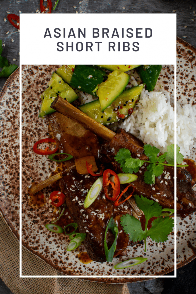 For my Asian version, I would recommend some simple steamed rice and maybe a refreshing smashed cucumber salad. The braising liquid works perfectly as a sauce, and the rice will soak it all up, but the freshness of the cucumber balances the flavours out greatly.