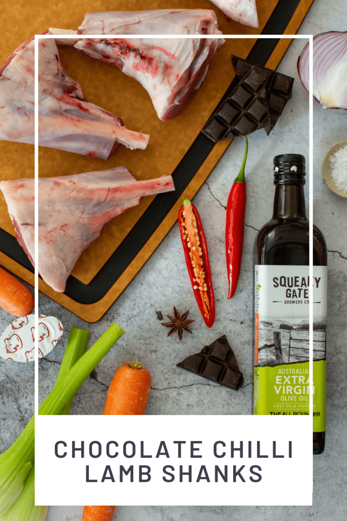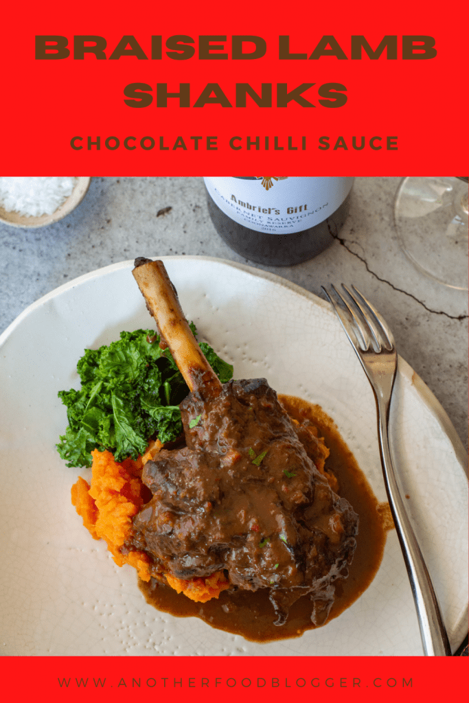 Sounds a little weird but boy is it delicious. When braising red meat you often cook it in a red wine and beef stock sauce. Aromatics like bay, thyme, anise and cinnamon are added to build layers of flavour. As you cook the dish slowly the meat takes on these flavours as the sauce reduces. For my braised lamb shanks dish I have followed the same principle but have upped the chilli a little and finished the sauce with a little dark chocolate.