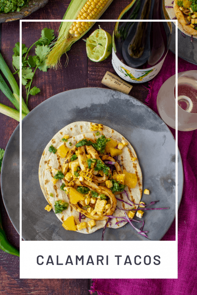 A calamari taco in one hand and a glass of Riesling in the other makes for a perfect meal.