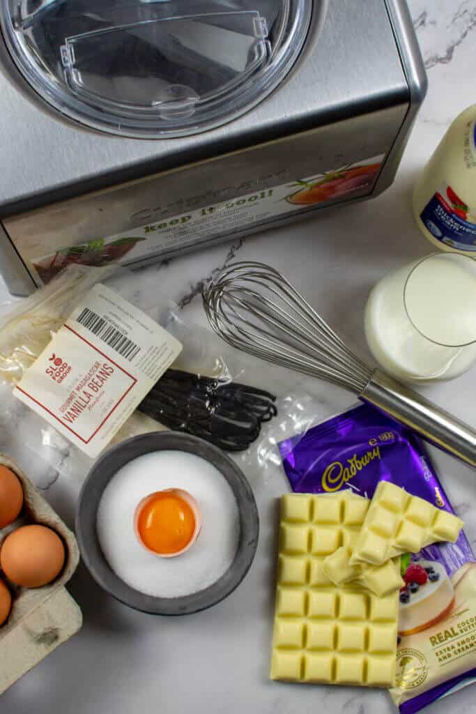 I like using a good number of egg yolks in my base - 5 to be exact, I lower the amount of sugar I am adding into a typical ice-cream base due to the extra sweetness of the caramelised white chocolate. A pinch of salt helps balance it out and NATURALLY some delicious vanilla from my good friends over at SloFoodGrp - the quality of their Madagascar vanilla bean is second to none.