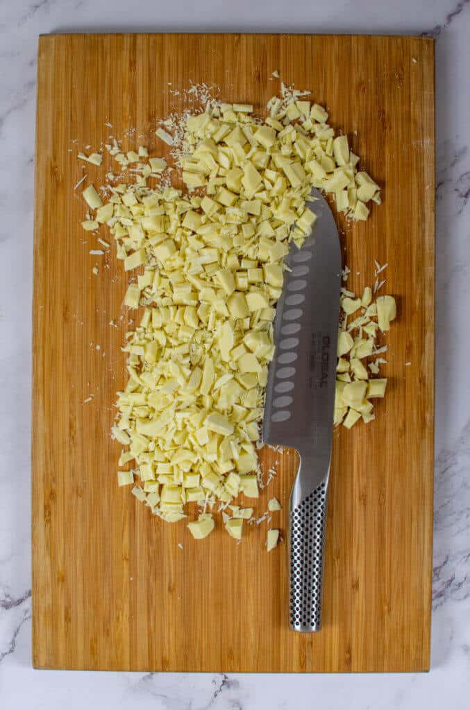- Place chopped white chocolate on a high sided baking tray and place into a 110c oven for 1 hour