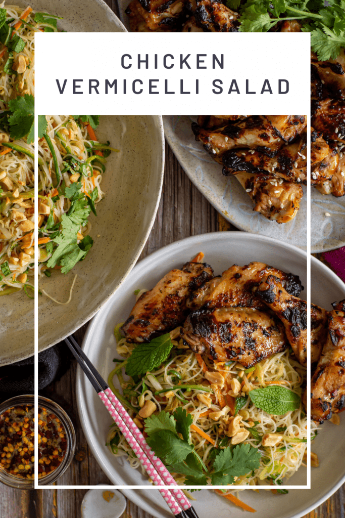 When we talk about vermicelli noodles - most people, including myself think of rice noodles that originated in China. These noodles are made from rice flour or mung bean starch. They are a staple all across Asia and are used in dishes such as Pho, Noodle Soup, Stir-Frys, Curries and in this case a Chicken Vermicelli Salad.