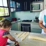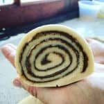 - Roll up the dough to form a log (like an old school swiss roll) and pinch the seam closed. Cut the dough in half and then cut each half into equal sized pieces. Approx 7 per half.