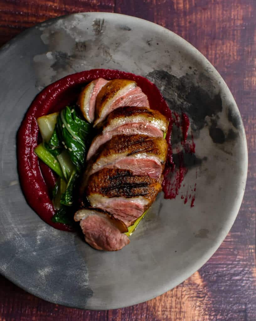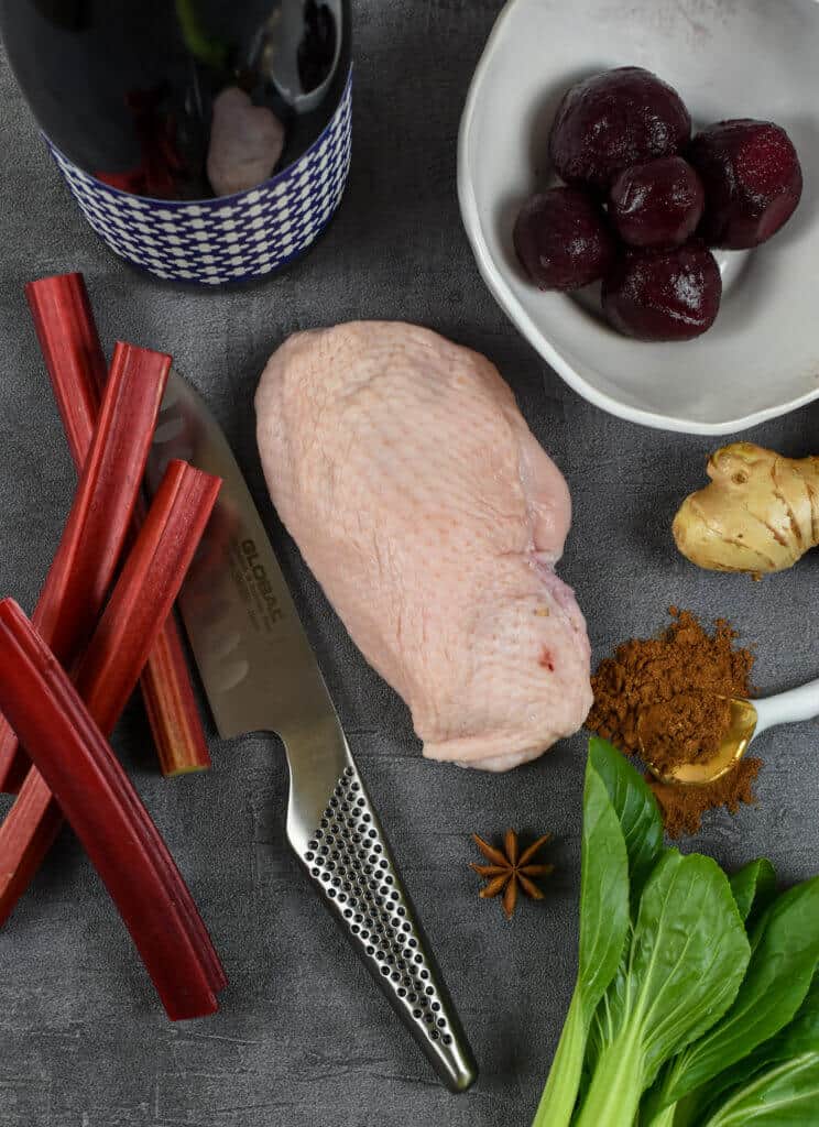 So, speaking with Bernice & Elena at Heirloom we decided duck breast was what we wanted to focus on but also plenty seasonal veggies and flavours. For me, duck breast is best with Asian flavours, so having made a rhubarb & beetroot ketchup recently I decided to play around with it a bit more and perfect it. Some simple Asian greens sauteed with a little soy made this 5 spiced duck breast dish a real winner.