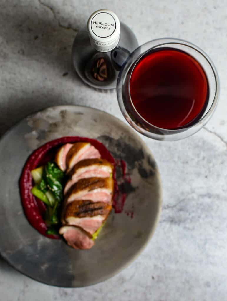 Without a doubt my current favourite pinot noir at the moment! Heirloom Alcazar Castle 2019 Pinot Noir. I picked up a bottle of this about 6 months ago from My Wine Guy and instantly fell in love. In fact, I picked up 3 extra bottles the next day! Little did I know that 2 months after that I was about to embark down the road of recipe development with Heirloom winery and creating a recipe for my favourite pinot #foodbloggergoals