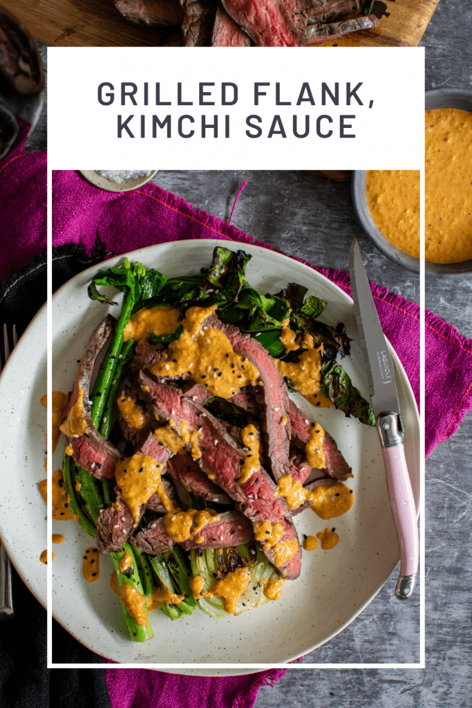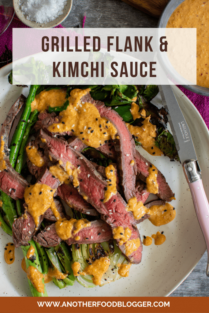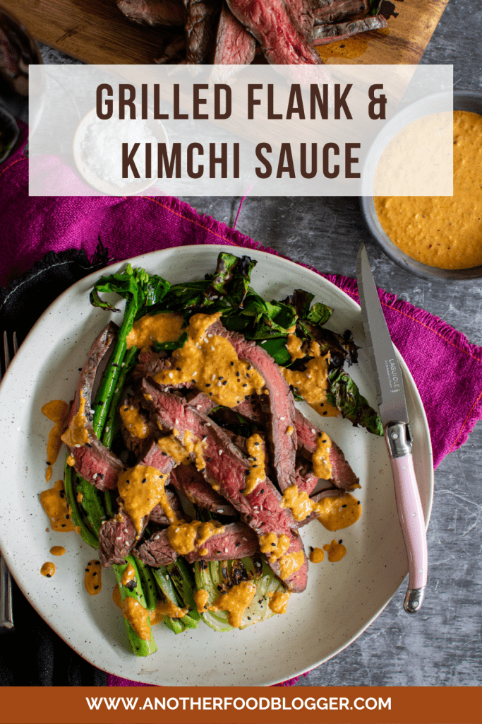 Who doesn't love kimchi? Well, if truth be told, Mrs AnotherFoodBlogger isn't the biggest fan, but I also didn't see her turning her nose up at this delicious grilled flank steak w/ kimchi sauce 😉