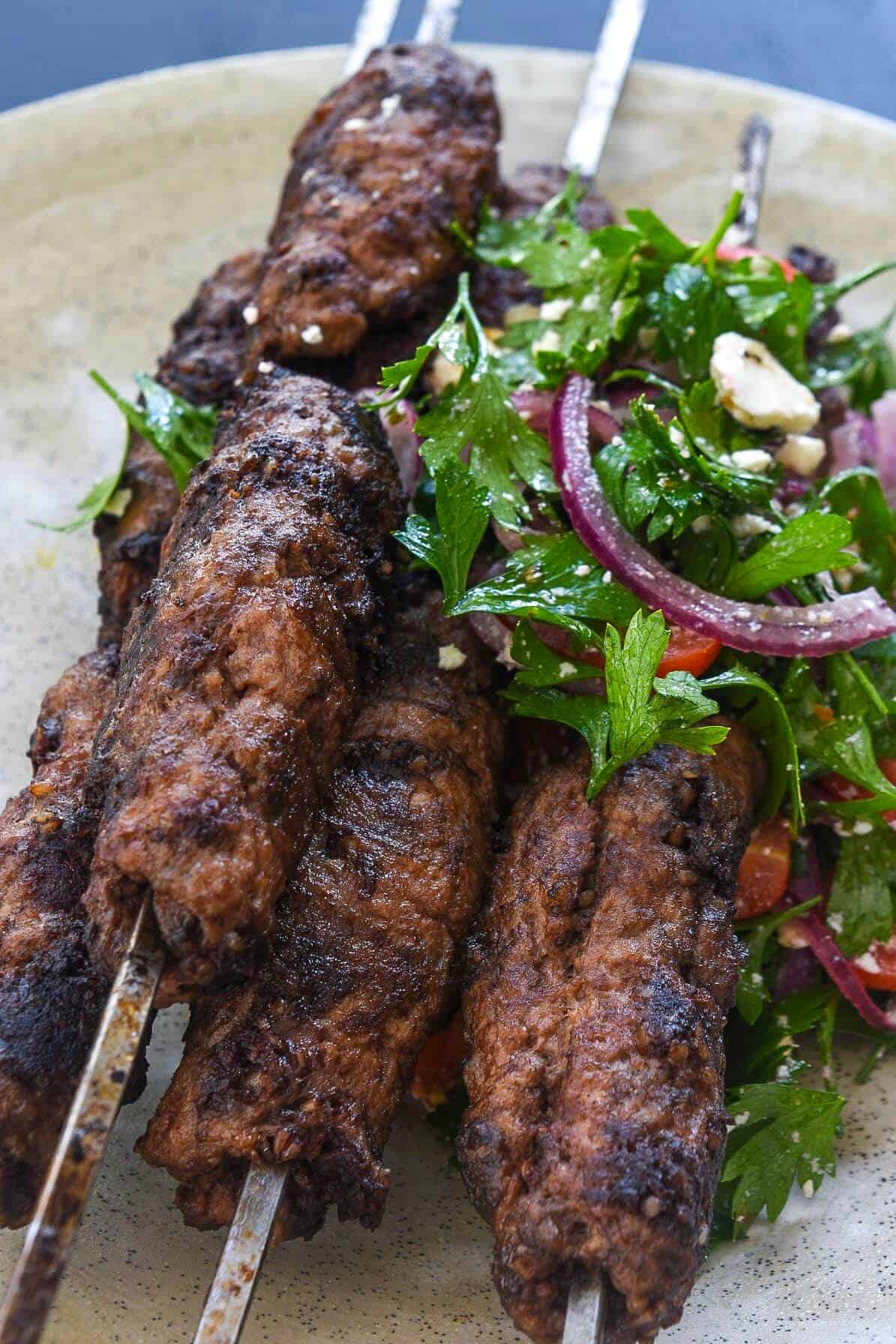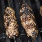 • you can use a grill pan or frying pan if a BBQ isn’t available or weather doesn’t permit• it’s easiest to roll the meat into balls and form the sausages on the skewers. I found that it clings better to the skewer that way