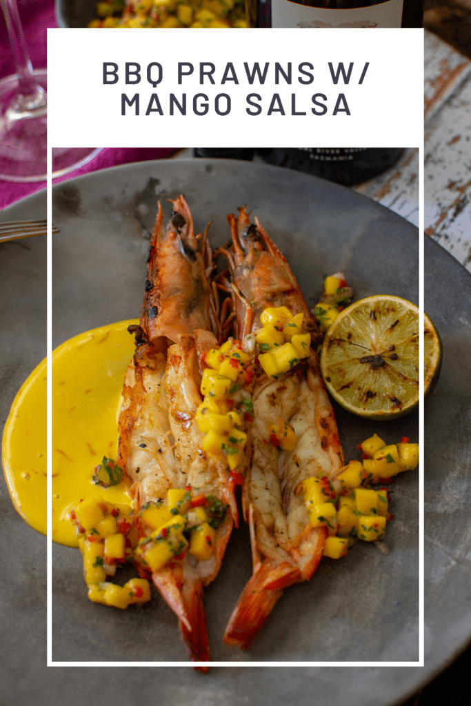 Is so delicious. Do I need to write more? It's a simple aioli made using saffron strands, egg yolks, garlic, mustard, lemon juice and a little maple syrup too. This delicious aioli pairs so well with the charred BBQ prawns and the sweetness from the mango chilli salsa.