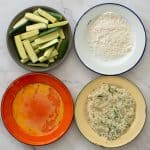 - Get 4 plates and place flour on one, beaten egg on another and a mix of panko, parsley & parmesan on the 3rd. The breaded zucchini