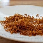 If you are one of those people (like I used to be!) who buys their crispy shallots from the local Asian market then shame on you! No seriously, it's totally acceptable to do so. BUT, once I started making my homemade crispy shallots I couldn’t believe I had wasted $$ on buying them. Read on and see how SIMPLE and DELISH these shallots are.