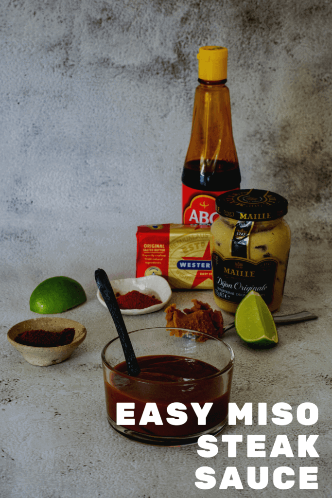 Simple ingredients that if you are like me, you have in the cupboard and fridge. Miso has a cracking shelf (fridge) life. Once you open it, store it in the refrigerator, and it will keep for close to a year. I use white miso in this miso steak sauce.