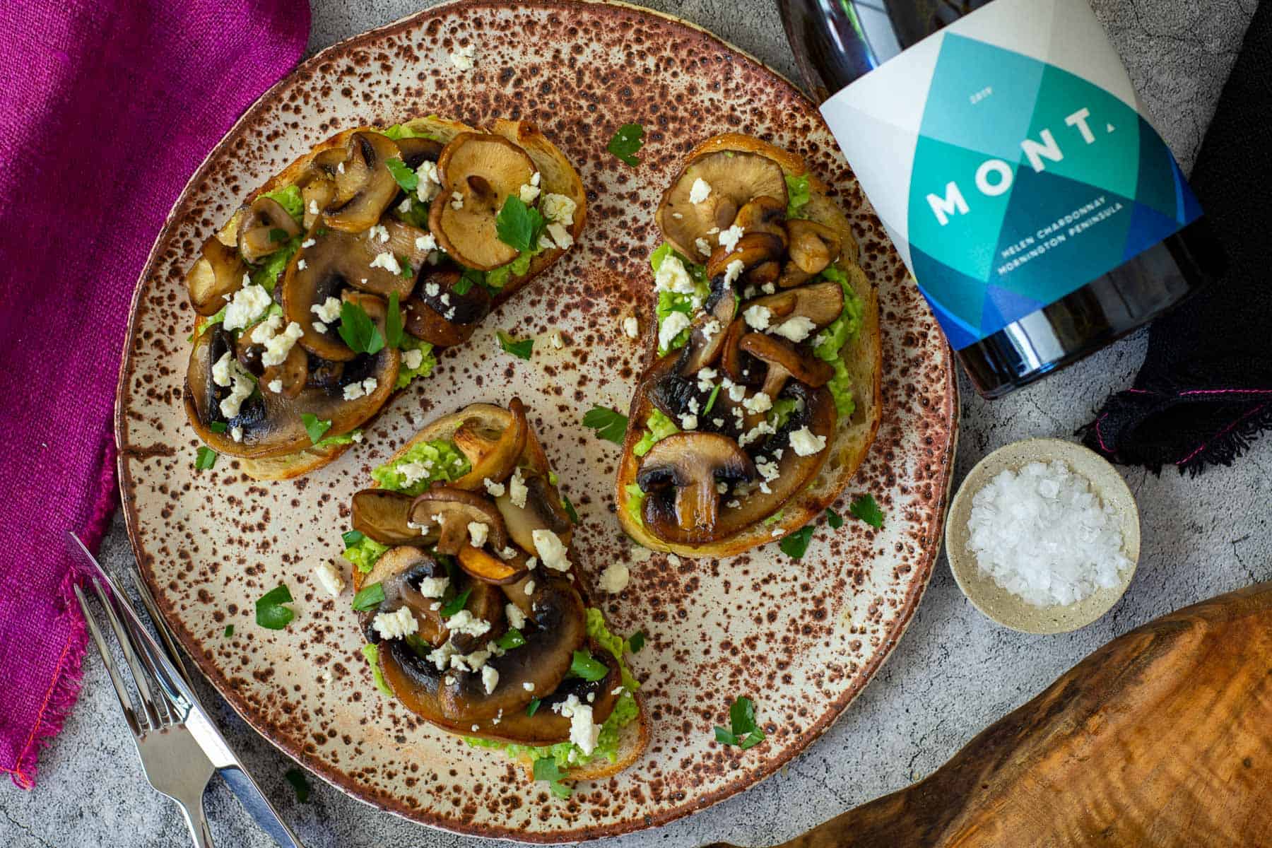 For exactly the reason I said - because it's perfect. It ticks all the right boxes. Even though it's a vegetarian dish all those wild mushrooms really add a meatiness to the dish. It's quick to make, requires only 1 component to cook (the mushrooms) which take a matter of minutes and it's a dish you can have for breakfast, lunch or dinner. Keep on reading to check out my pairing of a delicious Mornington chardy from Mont wines!!