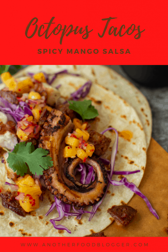 This simple little salsa ticks all the boxes for the grilled octopus tacos. It adds a nice fruity sweetness, bright acidity and a kiss of spice too. Mangoes are just coming close to season end here in Australia so it was only fitting that I sneak them into one final recipe 😉