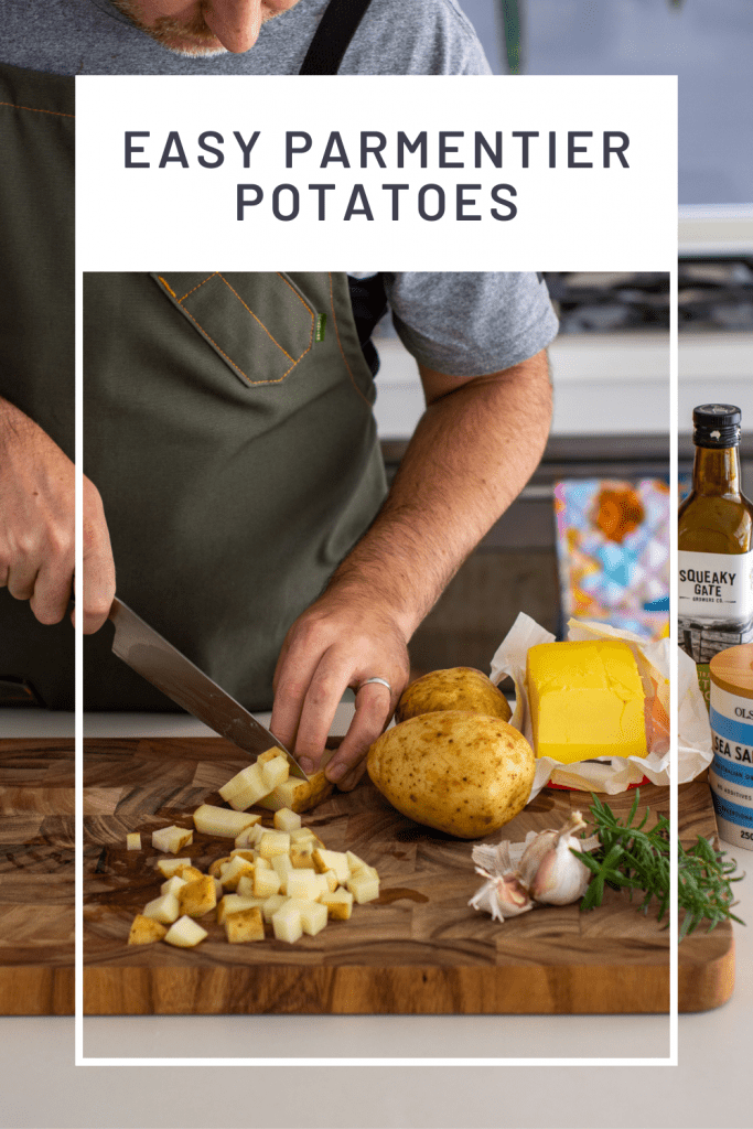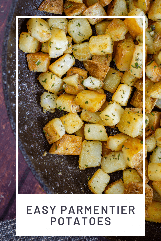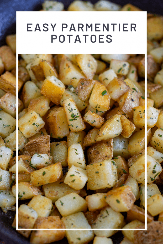 Parmentier potatoes are fancy little cubed potatoes. They are cooked in oil or sometimes duck fat with salt, garlic & herbs.