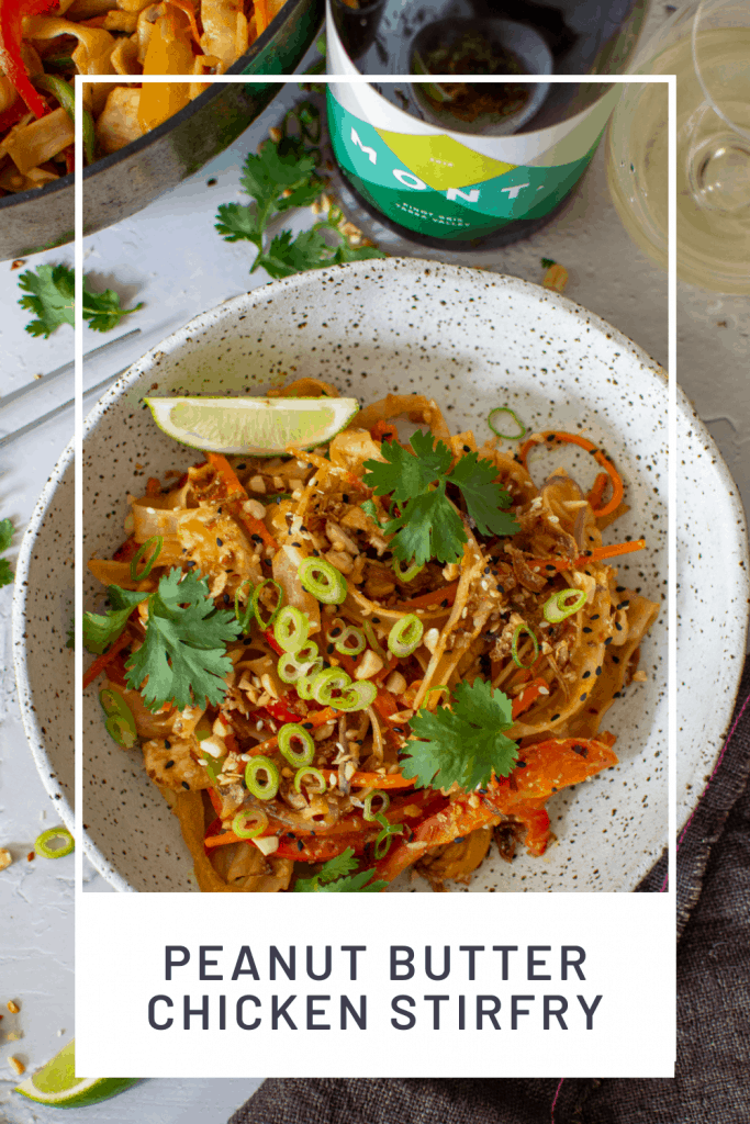Pinot gris loves spicy food. It works great with chicken, coriander, ginger & garlic so when planning this recipe and wanting a dish that like pinot gris is simple, elegant and cracking any night of the week my peanut butter chicken stirfry came to mind right away. After all, who doesn't love a good stirfry? Chuck it all in one pan and ready in under 30 minutes - winning!