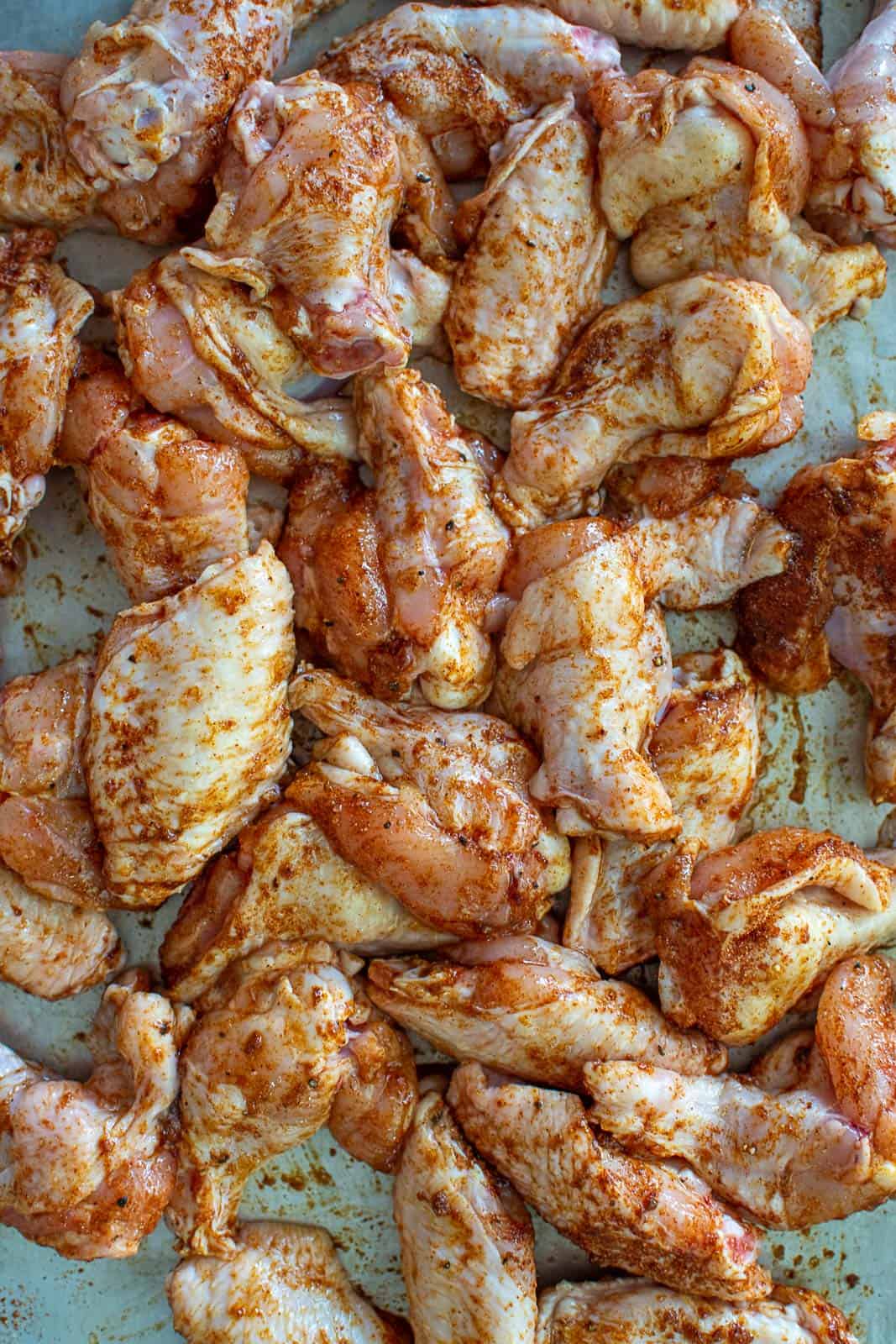 Truthfully you can just oil up the wings and add some salt and chuck them on but where is the fun in that? Here I have created a rub that has a nice kick to it from the cayenne, a smokiness from the paprika and sweetness from the brown sugar. This can be done up to 24hours in advance to allow the chicken to take on as much flavour as possible.