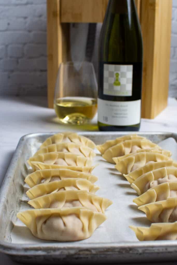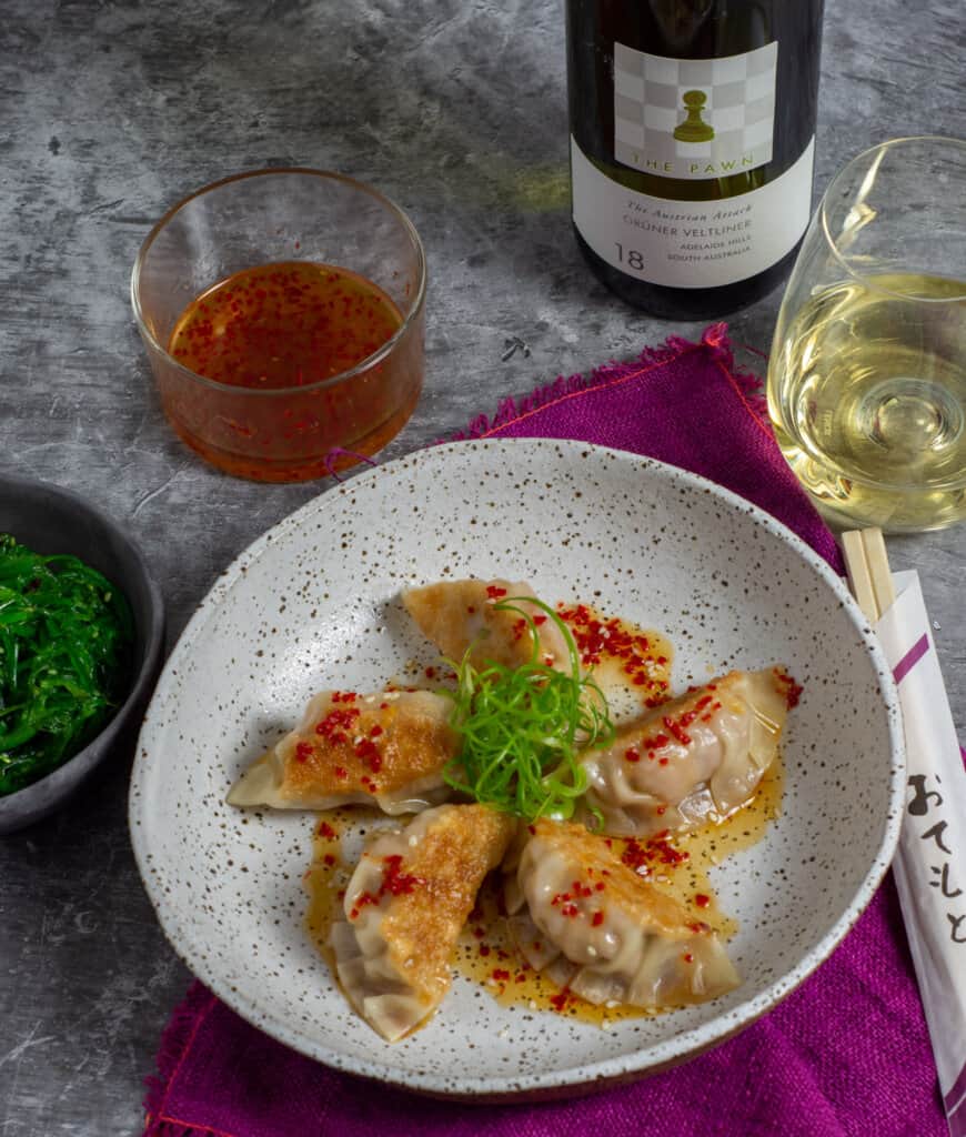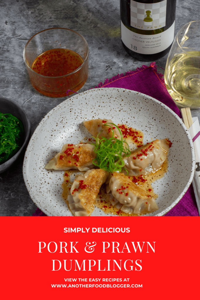 This week we are feasting on dumplings in AnotherFoodBloggers house! Boy, are my wife & I a fan of dumplings!! We used to eat them by the bucket load when living in NYC. What's not to love - soft steamed dumpling wrappers with a crispy base, a simple but so delicious filling and dipping sauce - it's all about the dipping sauce. AND if all that wasn't enough then these delicious pork & prawn dumplings are washed down with the equally impressive 'Austrian Attack' Gruner Veltliner from The Pawn Wine Co in Adelaide. I can tell you 100% that reading on is the smart thing to do 😉