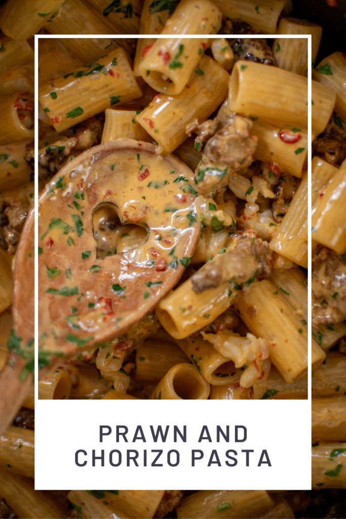 If a creamy pasta dish that is packed with flavours, and is on the table in 20 minutes is your thing then you have come to the right place! This prawn and chorizo pasta dish is a new weekly addition to the house. To make it even better you can pick up all these ingredients pretty easily at your grocery store too 😉