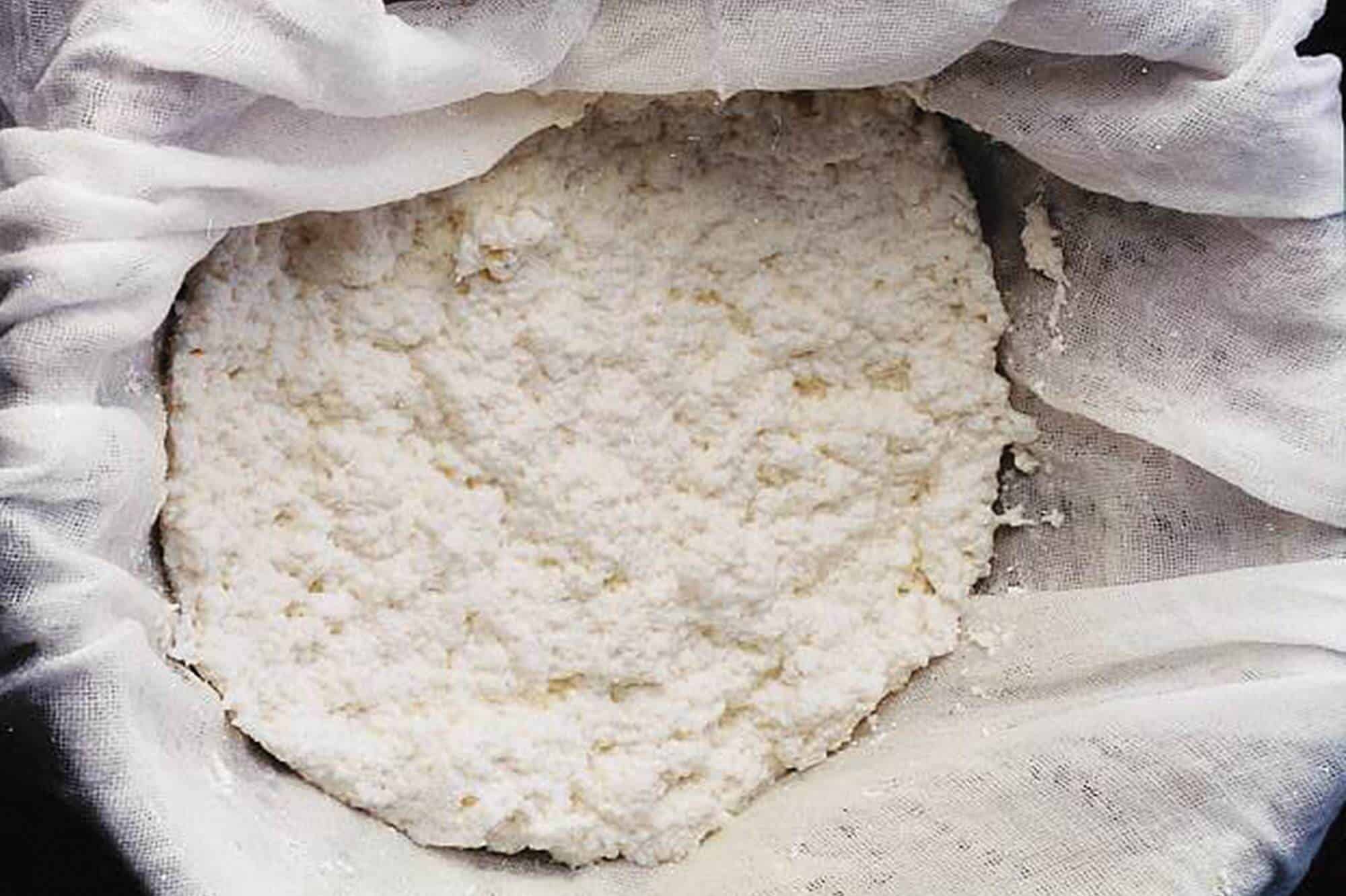 Probably the blandest of all cheeses. I guess you could say the chicken of the cheese family. Not particularly amazing on it's own but a cracking vessel for adding amazing flavours to it. Hence why I have used it in this ricotta cherry toast recipe. It is also probably the easiest cheese to make at home so great to impress your mates by saying during dinner that you made the cheese yourself. Making it is really very simple. You make ricotta by simply separating the curds and whey. You may remember little miss tuffet eating her curds and whey!