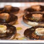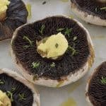 - Using a pastry brush lightly brush mushrooms with olive oil & sprinkle thyme on top. Place a small amount of butter on top of mushroom