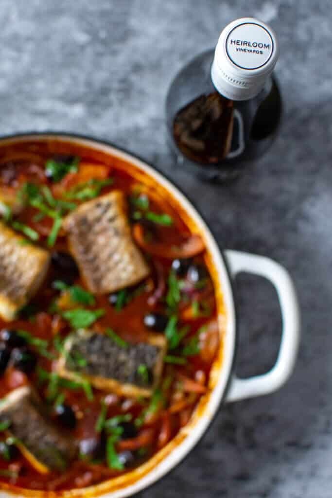 The wine I chose comes from Heirloom winery in McLaren Vale. The 2018 Anevo Fortress GTT I said it in a previous post and I'll say it again. I CAN'T get enough of their wines!! This particular blend is one that is starting to pop up a little more in at cellar doors and in wine shops. I for one am a fan. Personally, I like a good blend. Many like to let 1 grape sing but I like to see what someone else can bring to the party to improve things sometimes! This wine and my Spanish fish stew are a match made in heaven!