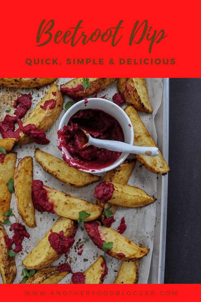 Beetroot is typically a winter vegetable. BUT making it into this delicious beetroot dip has transformed it (for me at least) into one that can be enjoyed all year round. Here I have paired it with some spicy potato wedges (recipe to follow) but it can be used with salmon, lamb, as a dip with some crackers. Versatile much?
