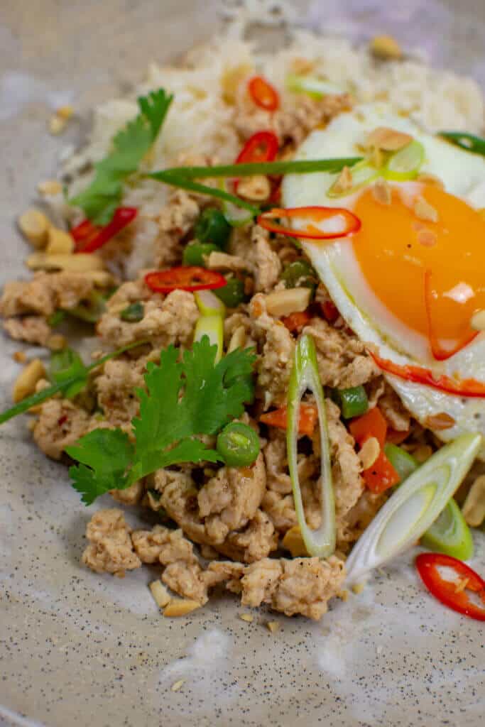 A lot of people scrimp on the garnish or seem it less as important as the rest of the dish but TRUST me, each individual component plays an important role. Here we use coriander - I know, I know it tastes like dishwater!! A little sprinkle adds some bright freshness to the dish. Crushed peanuts (I used salted) add yep, salt, and a little crunch too. Fresh chili because pretty much EVERYTHING is better with spice 😉 Without these garnishes, you wouldn't get those extra pops of flavour and trust me it TRULY makes all the difference!