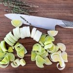 - Leeks - one whole leek will do. Slice it in half lengthways, rinse the dirt from the leek and slice to 1cm discs. Can't get leeks - then brown onions will do the trick
