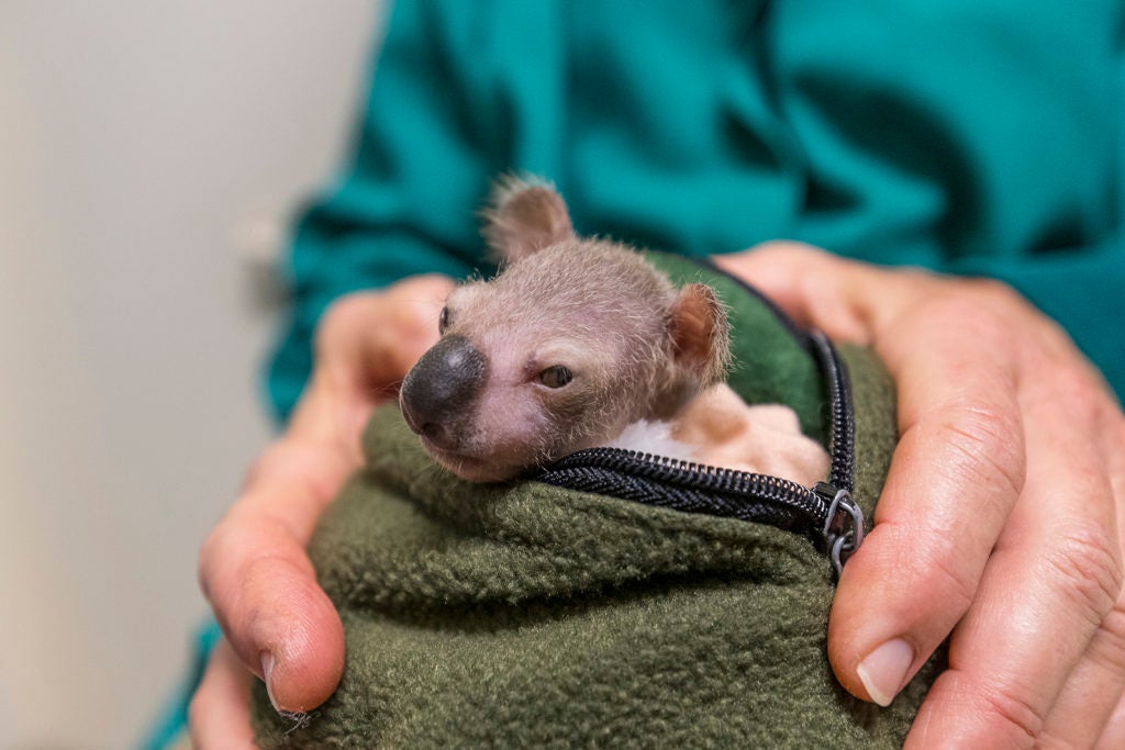 Seeing her in action, it looks like just another impossibly tiny neonate being patiently fed a bottle by a professional wildlife care expert at the San Diego Zoo (SDZ). But a closer look reveals this is no ordinary case that the Neonatal Assisted Care Unit (NACU), along with Cora Singleton, DVM, and the koala care team is keeping alive. “We have never raised a koala this young,” said Becky Kier, lead neonate care expert. Early on, the joey looked more like a featherless cockatoo than a miniature marsupial.