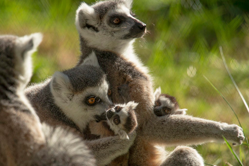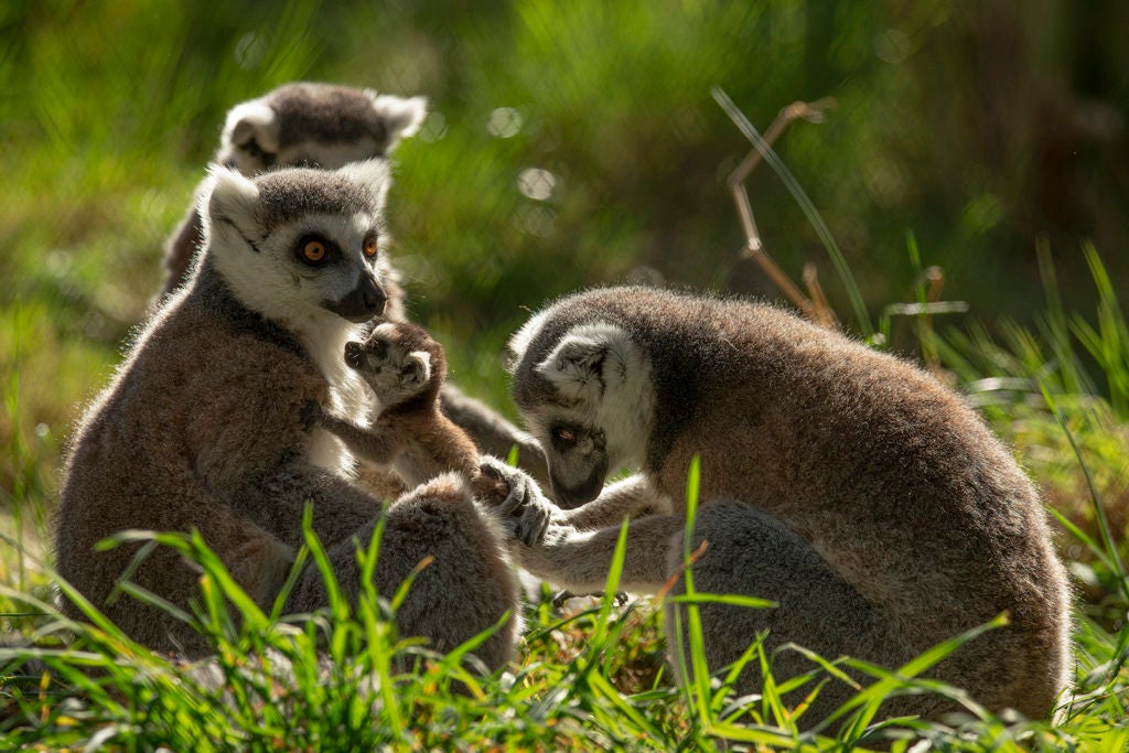 Kaleena is allowing her sister, Shabazz, to alloparent for brief periods and lets her half-sisters, Taz and Rosalita, groom the infants while she holds them for nursing. Ring-tailed lemurs are classified as Endangered due to habitat loss and the illegal pet trade. San Diego Zoo Global is contributing to saving this species by participating in the Species Survival Plan. Every individual addition to the population in managed care is a triumph to the conservation efforts in place on behalf of the ring-tailed lemurs in Madagascar and in zoos.