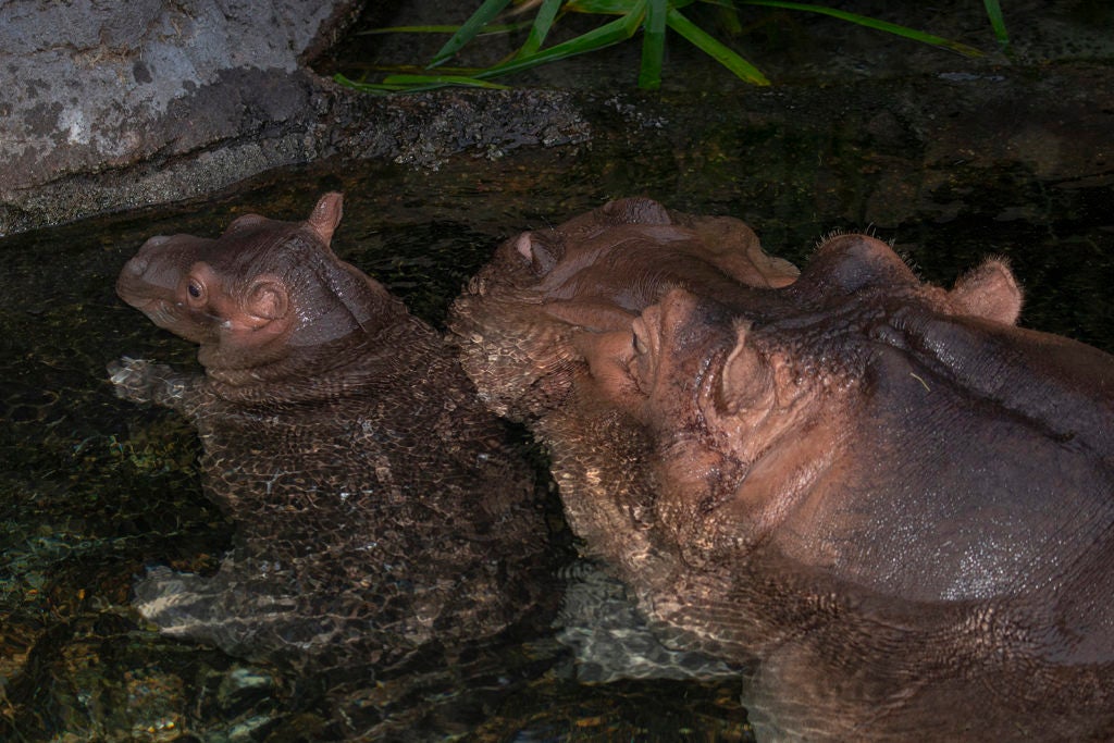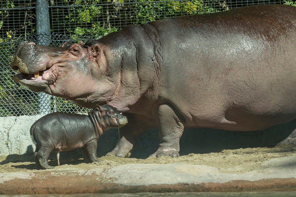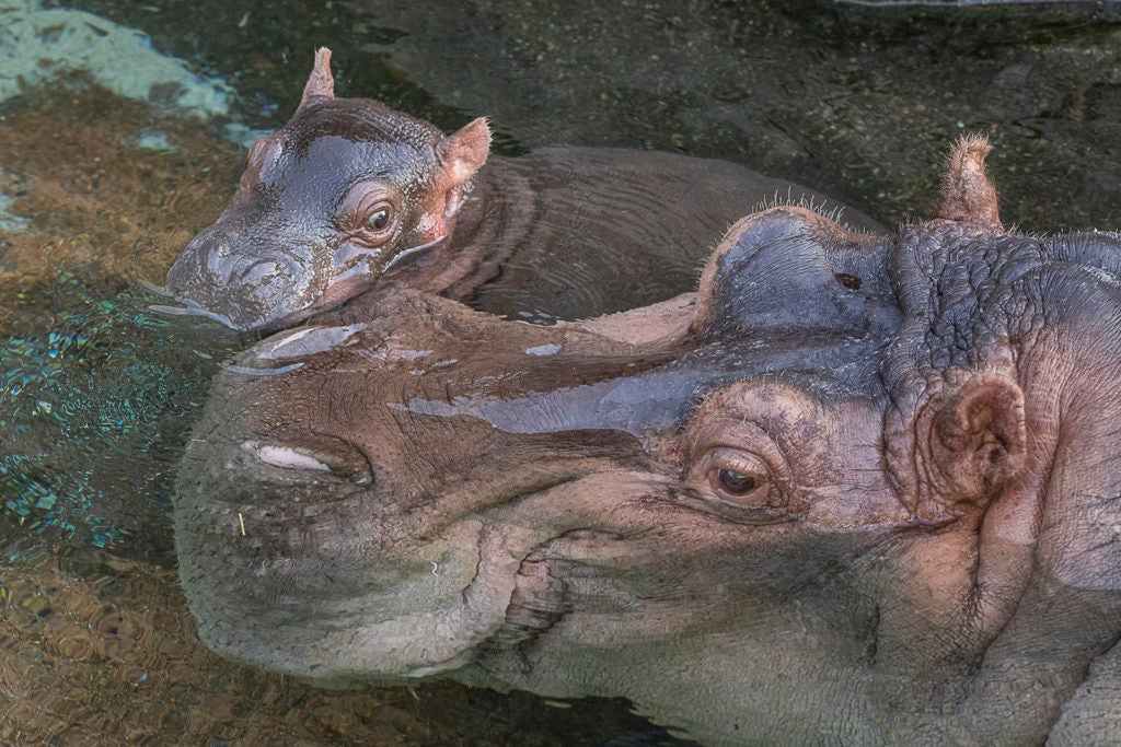 It is important to note that Funani is such a protective and reactive mom that it is imperative for the health and well-being of all involved to keep Otis separated from her while she raises a calf. At birth, a calf can range in weight from 50 to 100 pounds and a protective mom, like Funani, often moves her large, almost 2-ton-body around quickly to ward off any possible threats to the calf; and that movement could result in injury to the little one. It happens in Africa, the native habitat of river hippos, where there is high calf mortality from quick movements by mom or members of their group, which is one theory as to why the river hippo gestation is so short.