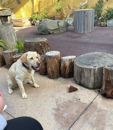This may look like a normal dog to you, but this is actually one of the cheetah companions at the Zoo. In this photo, Honey proudly sits after finding the fake “cheetah scat” and waits for further instruction.