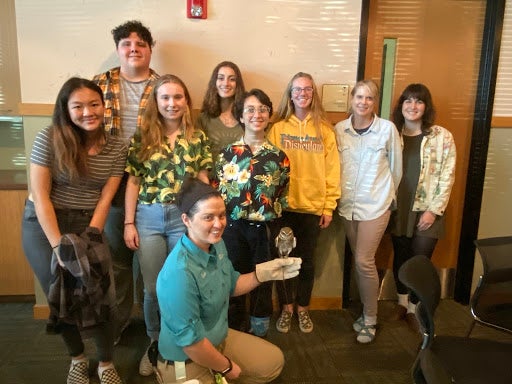 Here the interns pose with Senior Research Coordinator Susanne Marczak and a couple of her colleagues. If you look closely you can also see Dudley, an adorable burrowing owl that is an animal ambassador for the San Diego Zoo Safari Park.