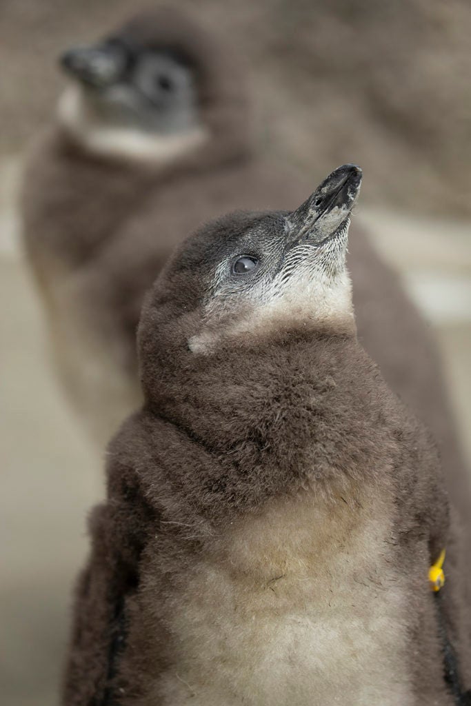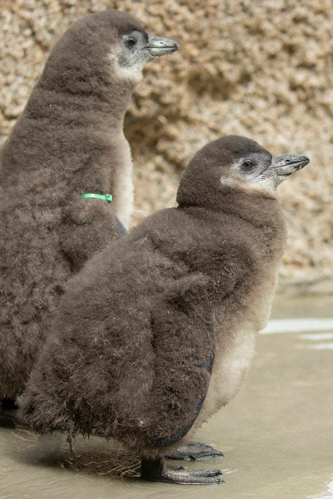 Just a bit shy of three months old, they are self-sufficient, independent kids. They spend their days enjoying their pool and practicing their swimming skills. They have almost lost the last tiny tufts of down on their heads and will be ready to meet the rest of the colony in the coming days.
