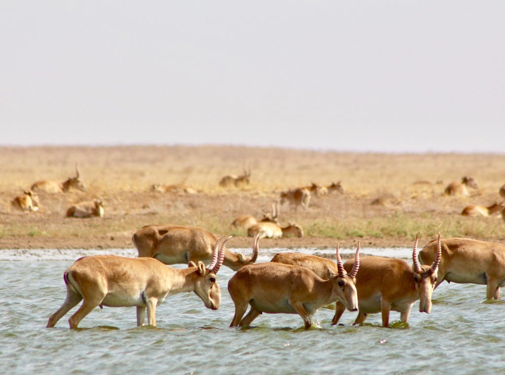 In 1994, there were about 1,350,000 saigas in Russia; today, there are a mere 65,000, with very few males—since poachers, who are mainly interested in the horns, take only the males. Learn more about how we're helping saigas here.