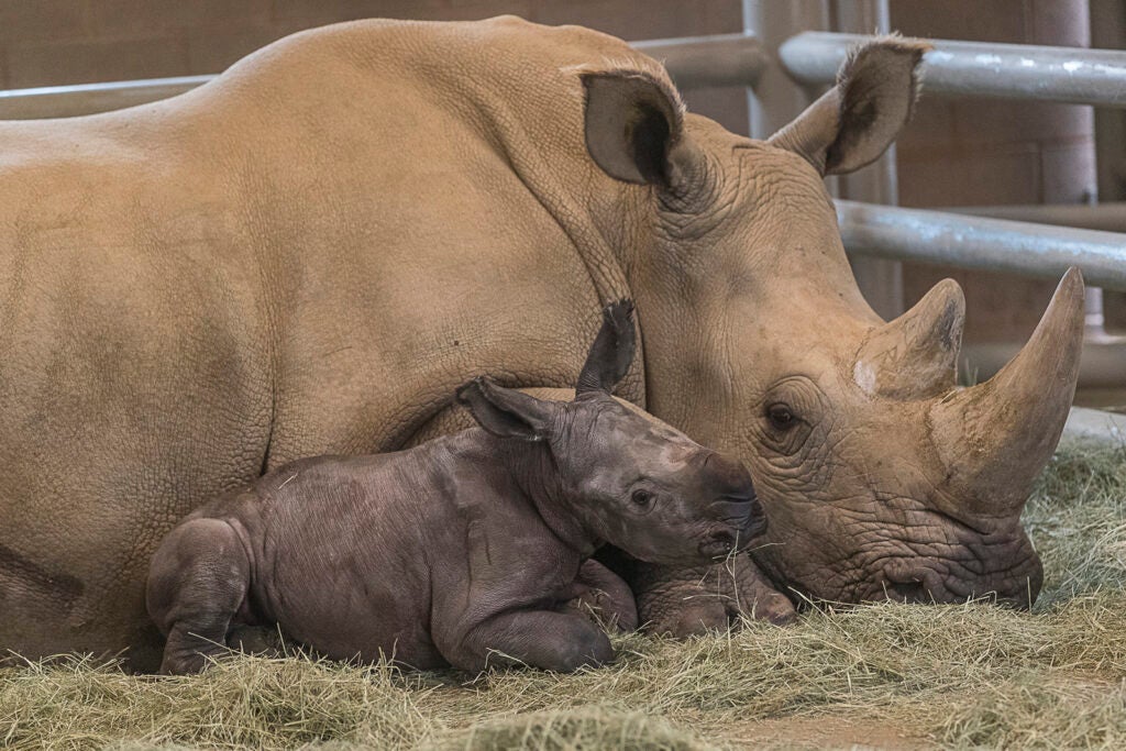 Much like the way new parents take this milestone to reflect on the birth and growth of their child and marvel at the experience, I remember how excited, anxious, and impatient we all were at this time last year. We had friends all over the globe eagerly awaiting his arrival along with us. And, when that time came, we were overjoyed with happiness, relief, and hope for the future of rhino conservation. Edward is so unique because he is the first southern white rhinoceros to be born as a result of artificial insemination in North America. Edward is here thanks to the efforts of so many people, such as wildlife care specialists, reproductive scientists, geneticists, and veterinarians who are part of the Northern White Rhino Initiative (NWRI).