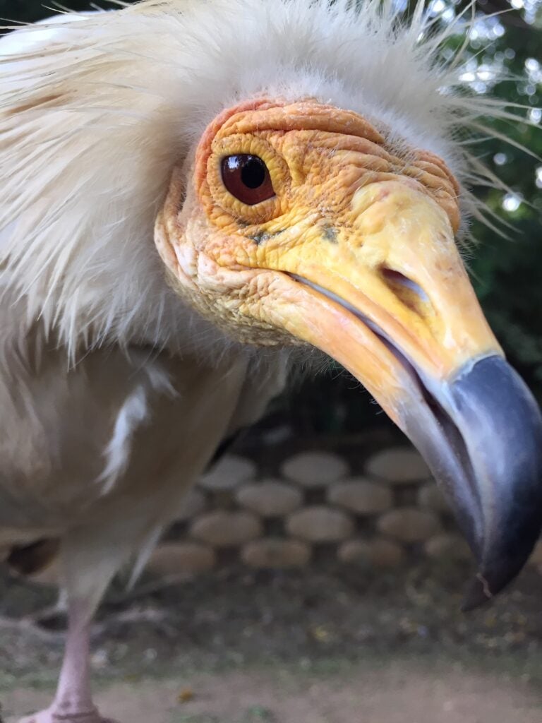 This story begins in 2008, when a pair of Egyptian vultures came to us from a rehabilitation facility in Zimbabwe. These two vultures had been illegally taken from the wild and were too habituated to human contact to be re-released. At that time, there were not many Egyptian vultures in the United States, and no reproducing pairs. By bringing this pair to the Safari Park, we could give them the opportunity to thrive and, hopefully, have offspring of their own.