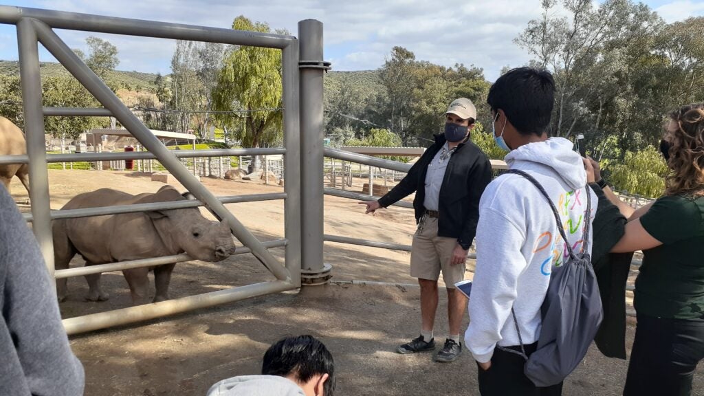Today, the interns had the opportunity to visit the Nikita Kahn Rhino Rescue Center at the San Diego Zoo Safari Park. The project was started in the fall of 2015, with goals focused on white rhino conservation. Its primary goal is the reproduction of critically endangered northern white rhinos with the assistance of in vitro fertilization. Senior Wildlife Care Specialist Weston Popichak was there to guide the interns through the process, speaking on his experiences while working with these grand creatures.