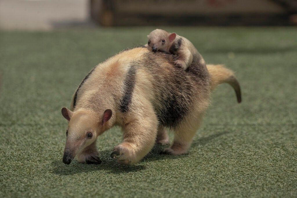 SAN DIEGO (Aug. 6, 2021) – San Diego Zoo Wildlife Alliance is proud to announce the birth of a southern tamandua (pronounced tuh MAN deh wah) pup at the San Diego Zoo Safari Park. The female pup, yet to be named, was born July 21 to first-time tamandua parents, Cora and Fernando. Wildlife care specialists report the pup is healthy, and Cora is being a very good mother—nursing, cleaning and grooming her baby, and giving her constant attention.
