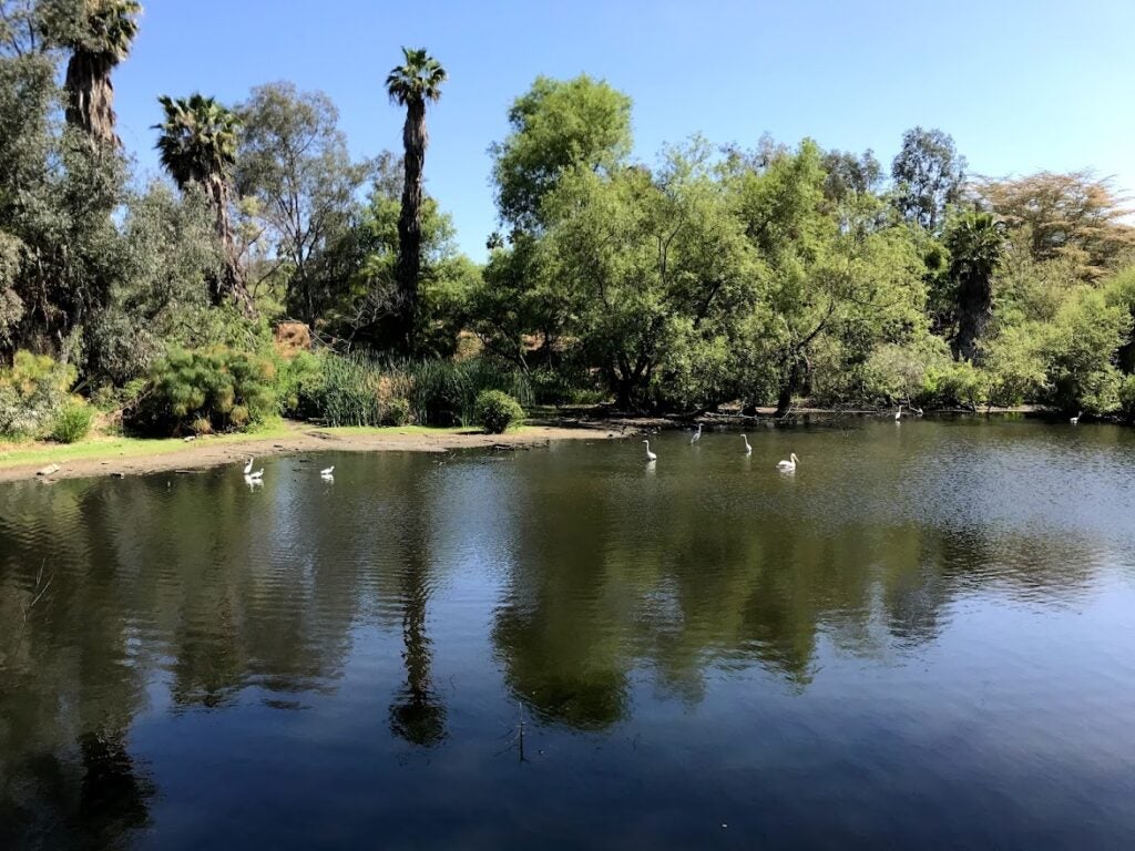 In 2021, we surveyed 22 points across the Biodiversity Reserve a total of four times, conducting surveys every other week. Points sampled as much of a range of habitat as the Reserve affords, including north- and south-facing coastal sage scrub, coast live oak woodland, chaparral, and even a sliver of willow-cottonwood riparian forest. Amazingly, we heard and saw a Least Bell’s Vireo—a federally listed species with very specific habitat requirements—in a tiny piece of riparian forest on the edge of the Safari Park property. Migratory waterfowl crowded into the Safari Park’s ponds and wetlands during the survey, showcasing the colors and diversity of the Pacific Flyway. A Wood Duck, Mandarin Duck, Pelagic Cormorant and Wood Stork were the most exciting sights at the ponds, occurring at the same time as our transects but vexingly never while we were collecting data. Other highlights of the 2021 survey were Band-tailed Pigeon and Horned Lark, as well as our locally common but regionally scarce residents, Coastal Cactus Wren and California Gnatcatcher.