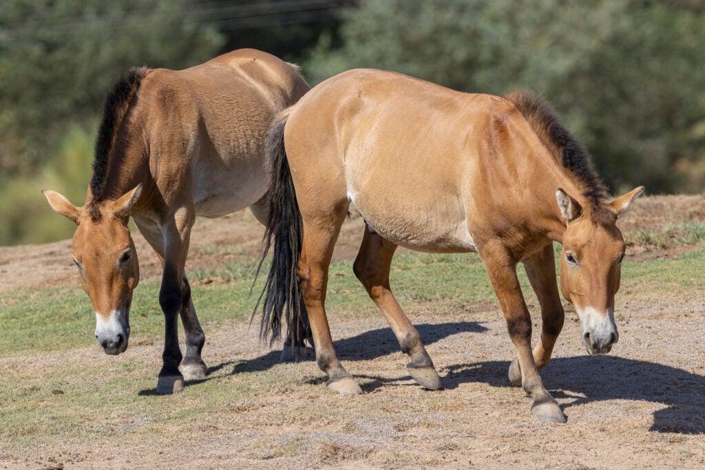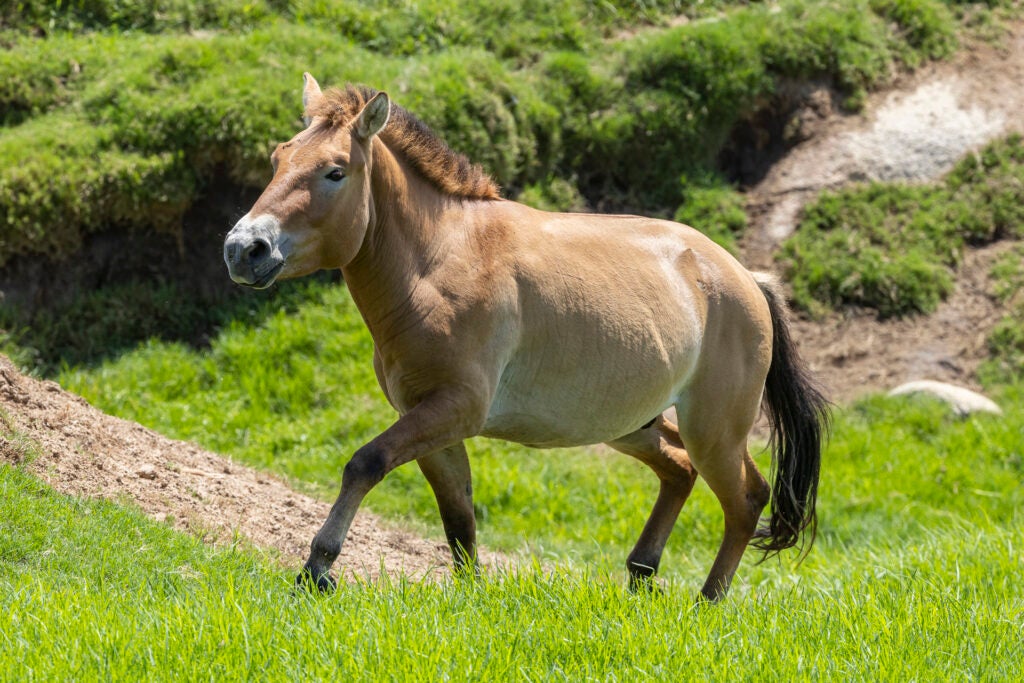 Kurt and Holly, two young Przewalski’s horses, race across a rolling, grassy hillside. As she gallops ahead, he follows. Slowing their stride, the affectionate pair brush noses as they stop to graze. This is a seemingly ordinary moment at the San Diego Zoo Safari Park—but decades of conservation work have led here. And together, these two may just save their species.