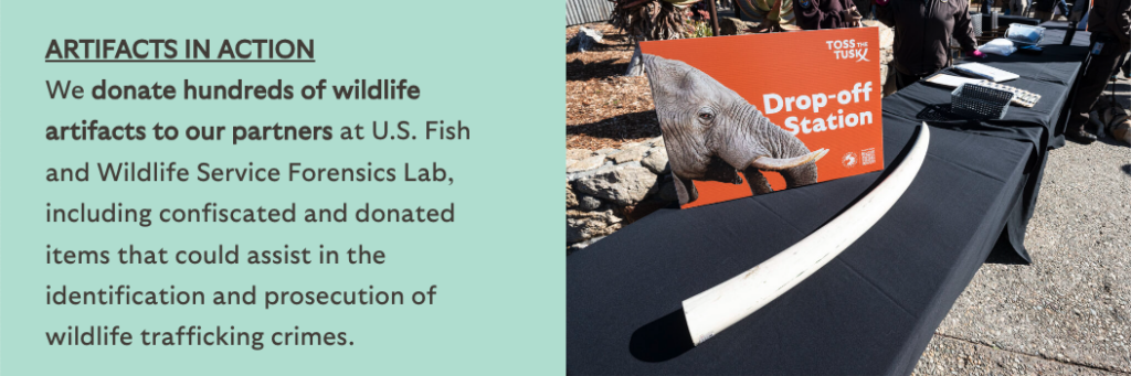 The artifacts in this subcollection are teaching tools. These items are used by our educators in contexts such as tours, school programs, and engagement with guests on site. Artifacts are a multisensory resource that allow us to engage with people of all ages and learning styles, and they provide a key touchpoint for our guests to establish personal connections with wildlife. Sharing artifacts with our guests builds understanding of biology and empathy for wildlife.