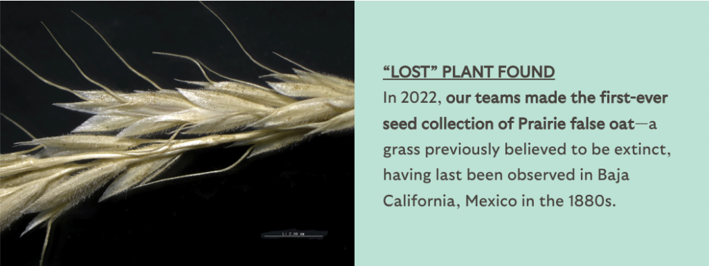 The goal of our Native Plant Gene Bank is to conserve material that can be propagated from all 134 of San Diego County’s rare and threatened plants. Seeds are the main material we collect and curate, but we also maintain collections in our nurseries, labs, and cryogenic tanks. Our collections provide insurance against catastrophic loss of a plant population or species. Conservation scientists are working to ensure the stored materials can be revived and grown into plants for restoration purposes.