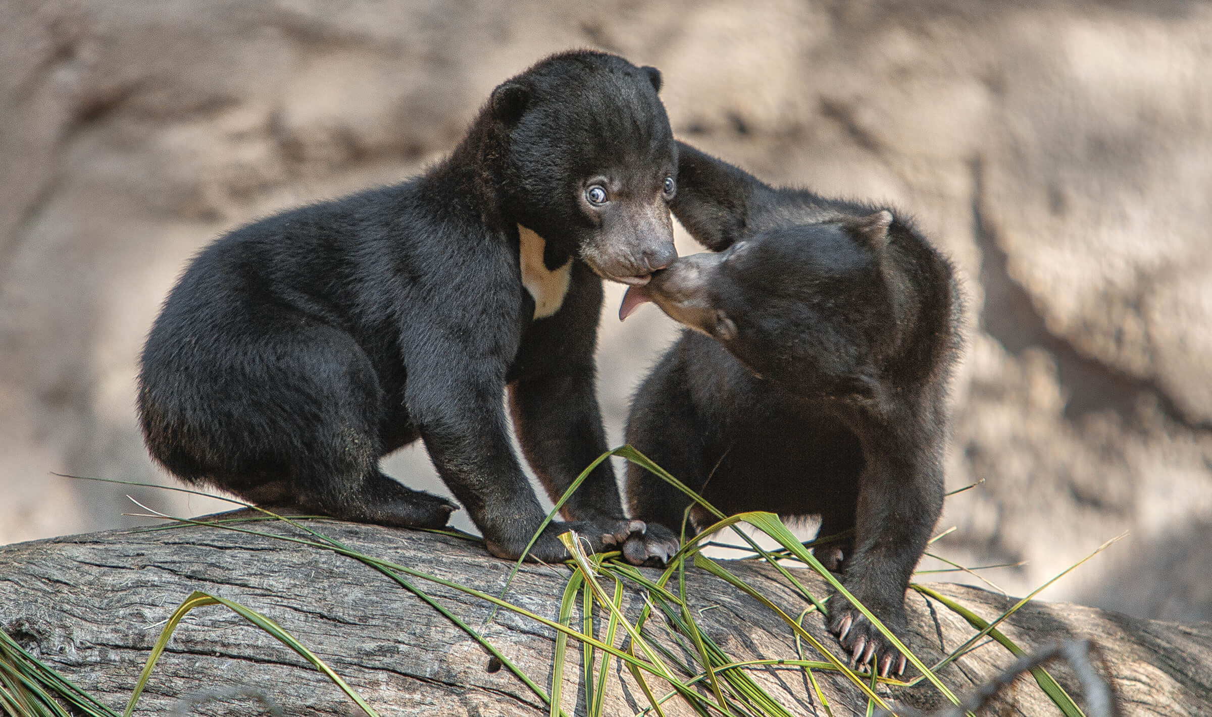 Along with adding to the population, Bornean sun bears at the San Diego Zoo have contributed to conservation efforts. One collaborative project, conducted through AZA, involved analyzing fecal hormones and collecting behavioral data to learn about reproductive cycling. Our conservation researchers described estrous cycles through vaginal cytology, and applied artificial reproductive techniques to evaluate reproductive viability of males. We also studied behavioral components of male-female interactions, maternal care, cub development, and the impact of ambient noise on mothers and cubs. San Diego Zoo Wildlife Alliance continues to work with global partners, including Free the Bears, on sun bear conservation projects, such as the development of an educational curriculum to increase awareness of sun bear needs and status in Asia. San Diego Zoo Wildlife Alliance is a member of the Roundtable on Sustainable Palm Oil, a collaborative effort directed toward development of sustainable practices for the palm oil industry that will benefit all wildlife in the range.