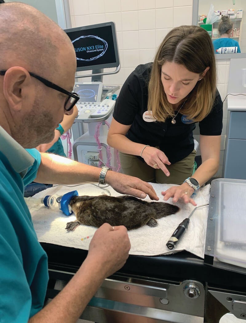 PLATYPUS DOCTORMeredith Clancy, DVM, gained firsthand experience examining and treating platypuses, learning from expert veterinarians in Australia.(Photo © Nick de Vos) [/caption]