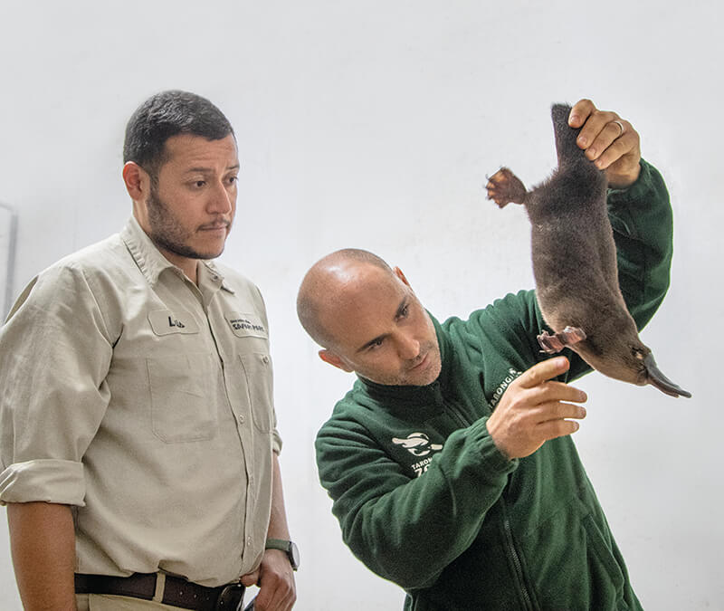 In 2016, the International Union for Conservation of Nature (IUCN) revised the conservation status of platypuses from Least Concern to Near Threatened, and more recent research suggests that the platypus population is continuing to decline. “San Diego Zoo Global has been following the platypus decline for some time,” says Randy Rieches, director of Collections Husbandry Science at the San Diego Zoo Safari Park. “We’ve been disturbed to see that this amazing species now needs increasing conservation attention.” To learn more about the elusive platypus and threats to its survival, SDZG has teamed up with the University of Melbourne and cesar (an Australian science-based environmental research and consulting company) in the largest-scale investigation of platypus populations in history. “We want to work with our colleagues in Australia to help keep this unique animal from becoming listed as an endangered species,” says Randy. [caption id="attachment_133574" align="aligncenter" width="1600"]